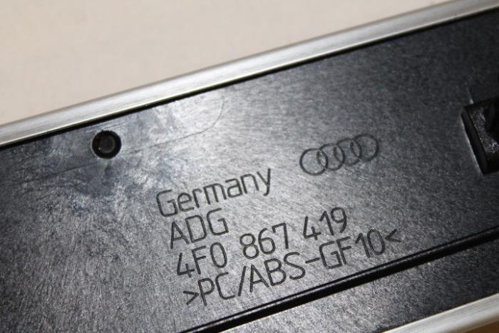 Sierlijst portier links achter Kleur: aluminiumzilver-geborsteld Kleurcode: 1NK Fabrikant: OE Vergelijkingsnummer: 4F0867419H 1NK