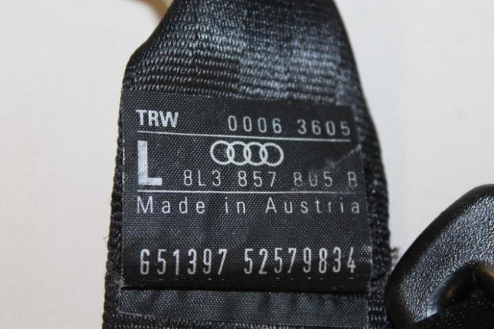 3-punts veiligheidsgordel met oprolautomaat en gordelspanner links achter (gordel dient goed schoongemaakt te worden) Kleur: Zwart Kleurcode: V04 Fabrikant: OE Vergelijkingsnummer: 8L3857805B V04