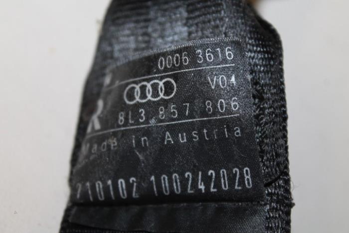 3-punts veiligheidsgordel met oprolautomaat en gordelspanner rechts achter (gordel dient goed schoongemaakt te worden) Kleur: Zwart Kleurcode: V04 Fabrikant: OE Vergelijkingsnummer: 8L3857806 V04