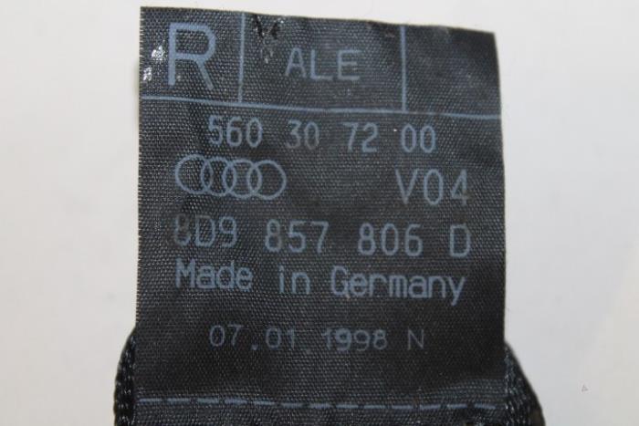 3-punts veiligheidsgordel voor wagens met pyrotechnische gordelspanner rechts achter (gordel dient goed schoongemaakt te worden) Kleur: Zwart Kleurcode: V04 Fabrikant: OE Vergelijkingsnummer: 8D9857806D V04