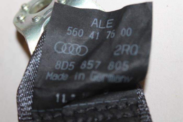 3-punts veiligheidsgordel met oprolautomaat en gordelspanner links en rechts achter (gordel dient goed schoongemaakt te worden) Kleur: Lei (grijs) Kleurcode: 2RQ Fabrikant: OE Vergelijkingsnummer: 8D5857805 2RQ