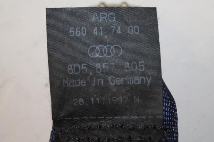 3-punts veiligheidsgordel met oprolautomaat en gordelspanner Links en rechts achter(gordel dient goed schoongemaakt te worden) Kleur: royalblauw Kleurcode: 9SV Fabrikant: OE Vergelijkingsnummer: 8D5857805 9SV