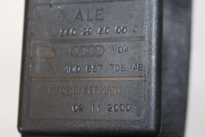 3-punts rolgordel met gordelspanner en bevestiging voor kinderzitje rechts voor incl. elektrische hoogteverstelling (gordel dient goed schoongemaakt te worden) Kleur: Zwart Kleurcode: V04 Fabrikant: OE Vergelijkingsnummer: 4D0857706AB V04