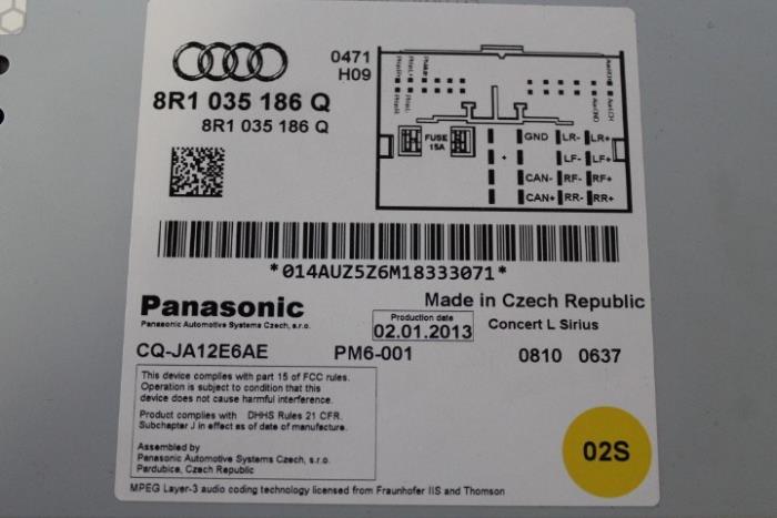 Autoradio ’stereo‘-‚cd.‘-‚mp3 met sd-kaartlezer USA (alleen voor amerikaanse uitvoering) Fabrikant: OE Vergelijkingsnummer: 8R1035186Q