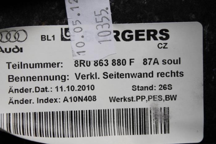 Bagageruimtebekleding rechts Kleur: Soul (zwart) Kleurcode: 87A Fabrikant: OE Vergelijkingsnummer: 8R0863880F 87A