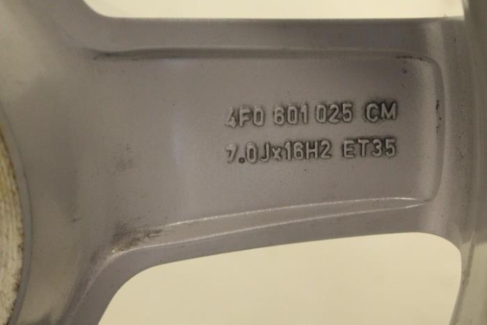 Aluminium velg 16 inch 7J Kleur: Briljantzilver Kleurcode: 8Z8 Steek: 5/112 ET Waarde: ET35 Fabrikant: OE Vergelijkingsnummer: 4F0601025CM 8Z8
