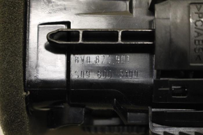 Luchtrooster dashboard Kleur: Soul (zwart) Kleurcode: 6PS Fabrikant: OE Vergelijkingsnummer: 8V0820901 6PS