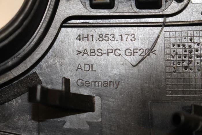 Dashboardafdekking Kleur: Aluminiumzilver-geborsteld Kleurcode: GN6 Fabrikant: OE Paar bevestigingspunt afgebroken, heeft wat lichte beschadigingen!! (zie foto) Vergelijkingsnummer: 4H1853173F GN6