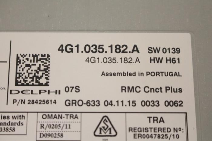 Regelapparaat voor informatie-elektronica ‚rmc‘ inclusief afdekking Fabrikant: OE Vergelijkingsnummer: 4G1035182A Regelapparaat dient nog gecodeerd/ingeleerd te worden. Tegen een geringe meerprijs is dit bij ons mogelijk.