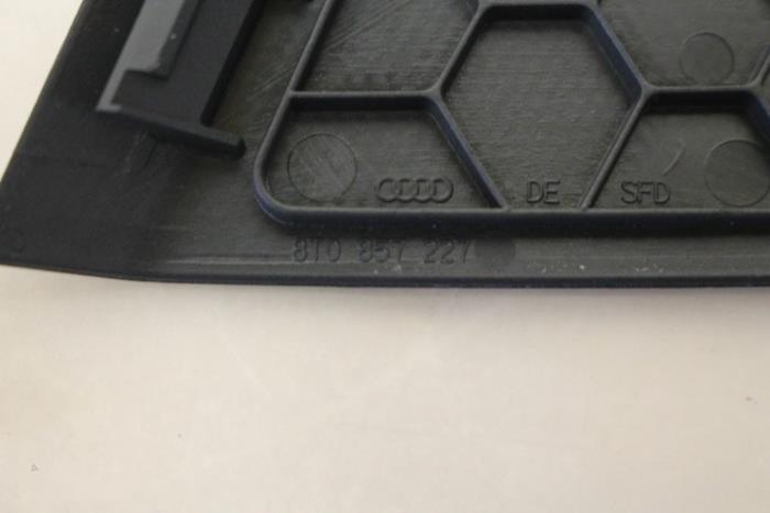 Luidsprekerrooster dashboard links Kleur: Soul (zwart) Kleurcode: 6PS Fabrikant: OE Vergelijkingsnummer: 8T0857227 6PS