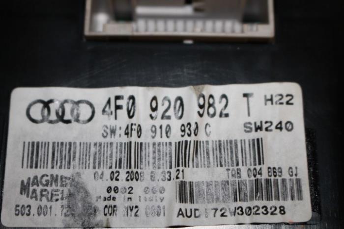 Instrumentenpaneel/km teller dieselmotor MPH Fabrikant: OE Vergelijkingsnummer: 4F0920982T Instrumentenpaneel dient nog gecodeerd/ingeleerd te worden. Tegen een geringe meerprijs is dit bij ons mogelijk.