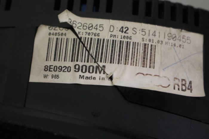 Instrumentenpaneel/km teller dieselmotor Fabrikant: OE Vergelijkingsnummer: 8E0920900M Instrumentenpaneel dient nog gecodeerd/ingeleerd te worden. Tegen een geringe meerprijs is dit bij ons mogelijk.
