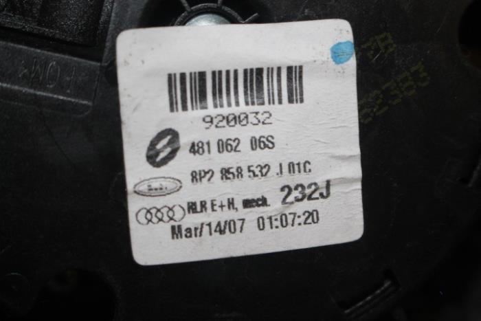 Buitenspiegelsteun rechts met elektrische versteleenheid inclusief spiegelkap ENGELS (rechtsgestuurde wagen) Kleur steun: Satijnzwart Kleurcode steun: 01C Fabrikant: OE Vergelijkingsnummer: 8P2858532J 01C