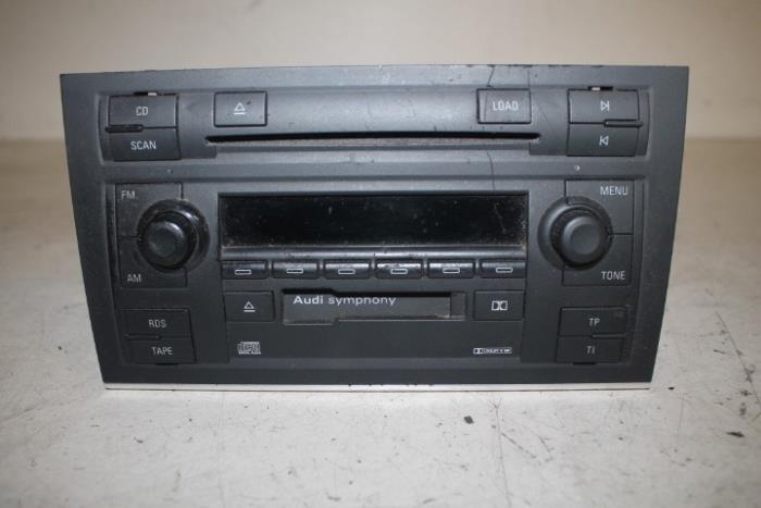 Autoradio Symphony 2 ’stereo‘-‚cassette‘ en ‚cd-wisselaar‘ Fabrikant: OE LET OP!!! Heeft behoorlijk wat beschadigingen!!! Vergelijkingsnummer: 8E0035195C