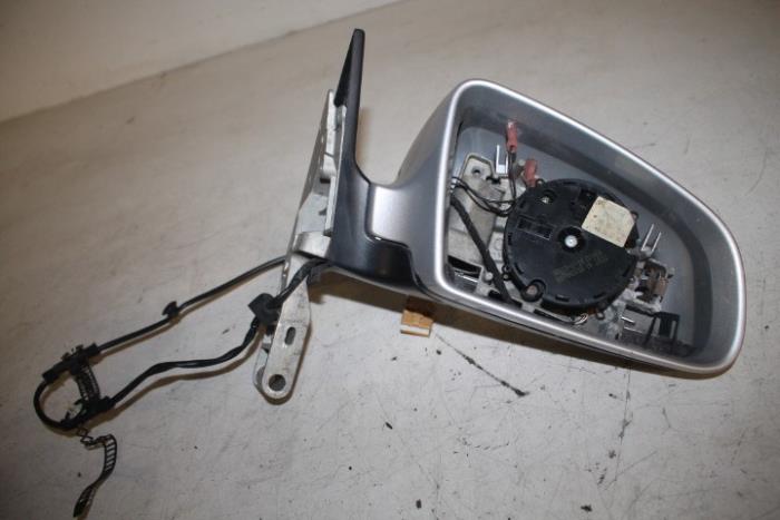 Buitenspiegelsteun met elektrisch versteleenheid rechts ENGELS (rechtsgestuurde wagen) Kleur spiegelkap: Lichtzilver-metallic Kleur steun : Satijnzwart Kleurcode: 01C Fabrikant: OE Spiegelkap heeft wat krasjes!!! Vergelijkingsnummer: 8H2858532 01C