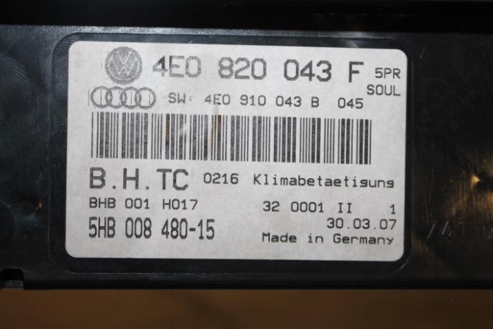 Climatronic paneel / weergave-en bedieningseenheid voor elektron. geregelde airconditioning Kleur: Soul (zwart) Kleurcode: 5PR Fabrikant: OE Vergelijkingsnummer: 4E0820043F 5PR