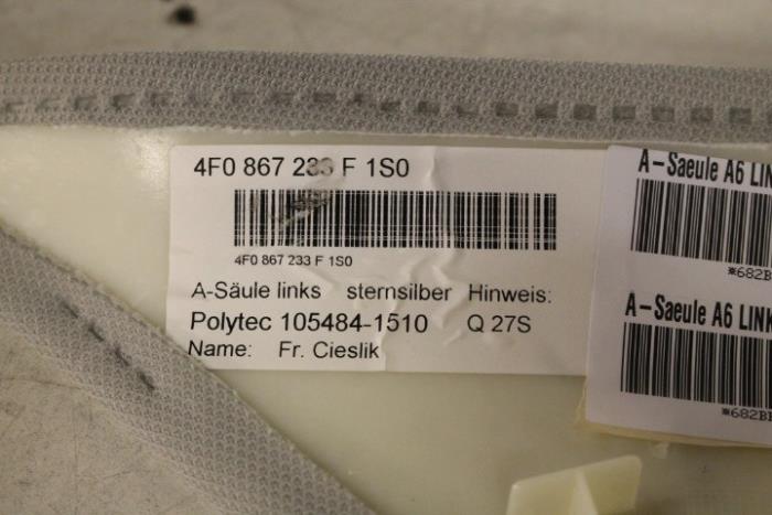A-stijlbekleding links boven Kleur: sterzilver Kleurcode: 1S0 Fabrikant: OE Vergelijkingsnummer: 4F0867233F 1S0