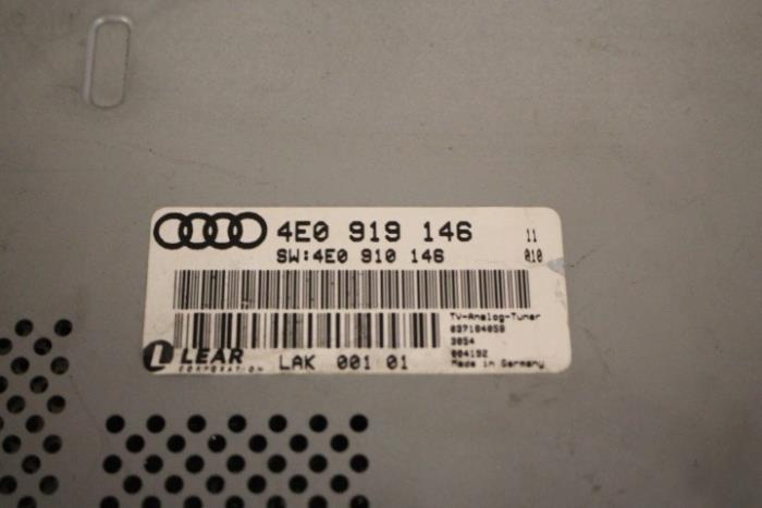 Tv-ontvanger (tuner) met software Fabrikant: OE Vergelijkingsnummer: 4E0910146 TV-tuner dient nog gecodeerd/ingeleerd te worden. Tegen een geringe meerprijs is dit bij ons mogelijk.
