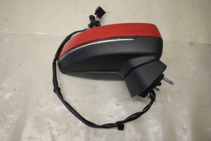 Buitenspiegelsteun rechts elektrische versteleenheid inclusief spiegelkap ENGELS (rechtsgestuurde wagen) Kleur spiegelkap: Rood Kleur steun: Satijnzwart Kleurcode: 9B9 Fabrikant: OE Vergelijkingsnummer: 8V5857410A 9B9