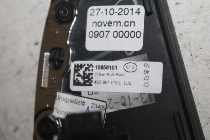 Sierlijst portier links achter Kleur: Pianotoets-zwart Kleurcode: 1LQ Fabrikant: OE LET OP!!! HEEFT WAT KRASJES!!!! DIENT GEPOLIJST TE WORDEN!!! Vergelijkingsnummer: 4G0867419L 1LQ