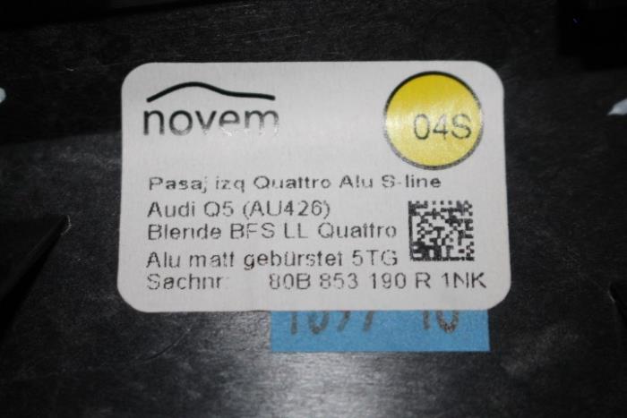 Set interieurlijsten compleet (quattro) Kleur: Aluminiumzilver-geborsteld Kleurcode: 1NK Fabrikant: OE Let op !!! Midden-console lijst heeft 2 krassen en kleine putjes er in. Vergelijkingsnummer: 80A867 1NK