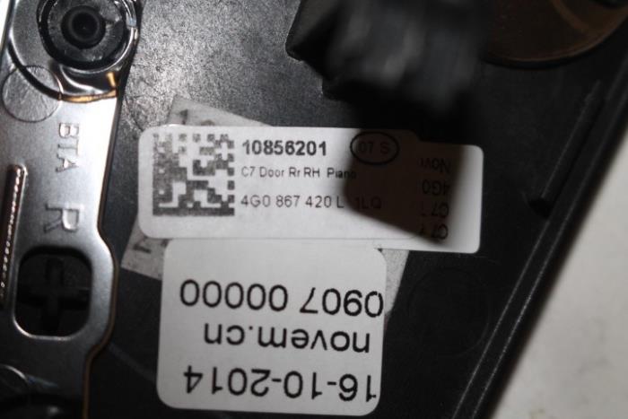 Sierlijst portier rechts achter Kleur: Pianotoets-zwart Kleurcode: 1LQ Fabrikant: OE LET OP!!! HEEFT WAT KRASJES!!!! DIENT GEPOLIJST TE WORDEN!!! Vergelijkingsnummer: 4G0867420L 1LQ