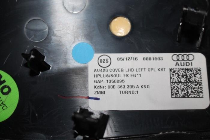 Zijbekleding voor middenconsole leer links Kleur: Soul (zwart) / rotsgrijs Kleurcode: KND Fabrikant: OE Vergelijkingsnummer: 80B863305A KND