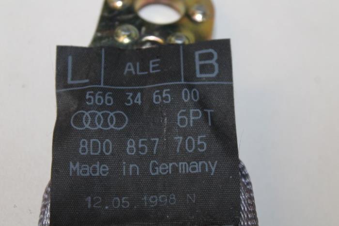 3-punts rolgordel met gordelspanner en bevestiging voor kinderzitje links voor (gordel dient goed schoongemaakt te worden) Kleur: Goud Kleurcode: 6PT Fabrikant: OE Vergelijkingsnummer: 8D0857705 6PT