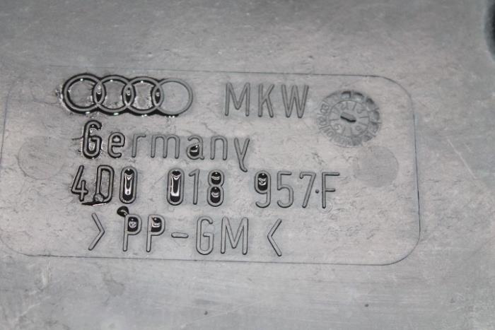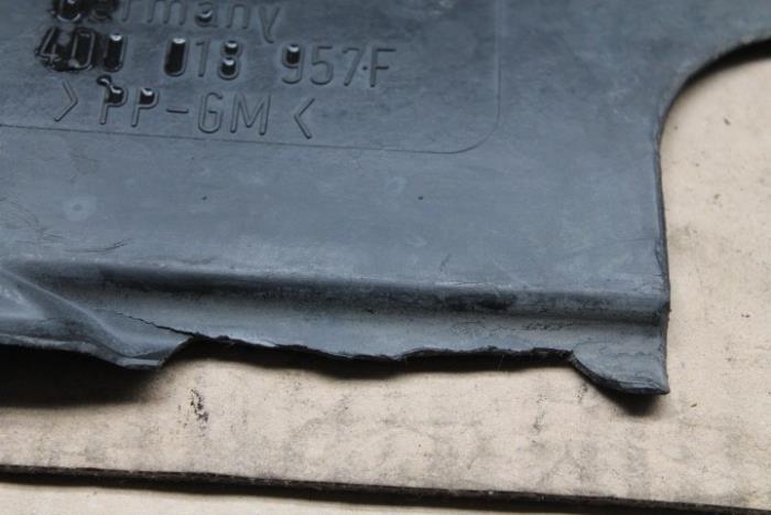 Bodemplaat/bekleding brandstoftank links Fabrikant: OE Randje afgebroken, nog wel te monteren!! (zie foto) Vergelijkingsnummer: 4D0018957F