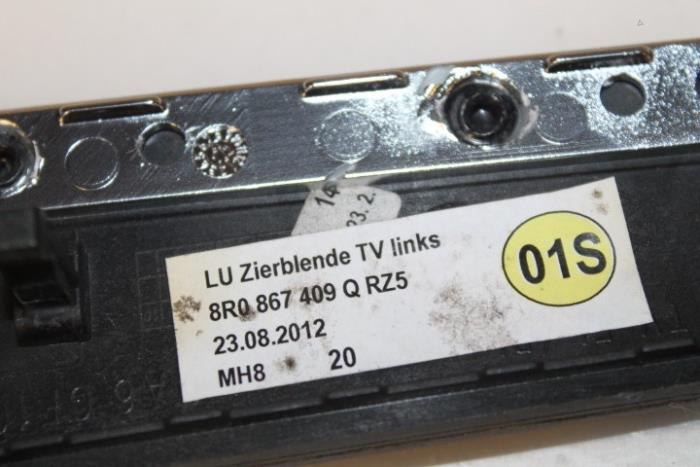Sierlijst portier links voor / links achter Kleur: Notenboomwortel/chocobruin Kleurcode: RZ5 Fabrikant: OE Vergelijkingsnummer: 8R0867409Q RZ5