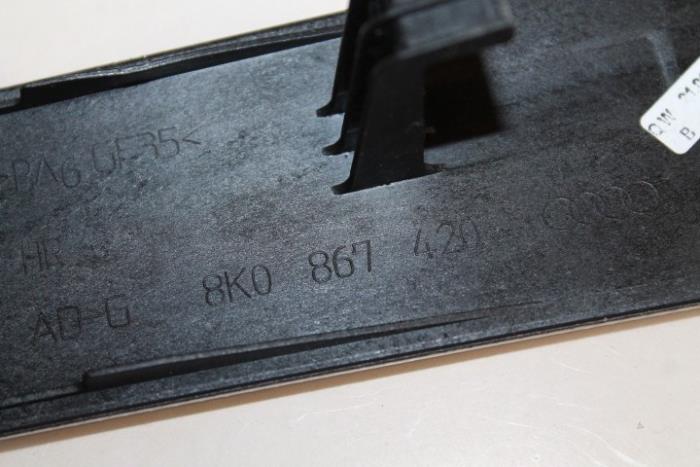 Sierlijst portier rechts achter (ZGAN) Kleur: Aluminium ’trigon’ Kleurcode: AR8 Fabrikant: OE Vergelijkingsnummer: 8K0867420L AR8