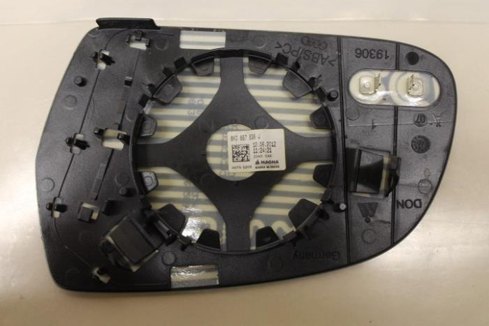 Spiegelglas (convex) met draagplaat rechts USA (amerikaanse uitvoering met tekst objects in mirror are closer then they appear) Fabrikant: OE Vergelijkingsnummer: 8K0857536J