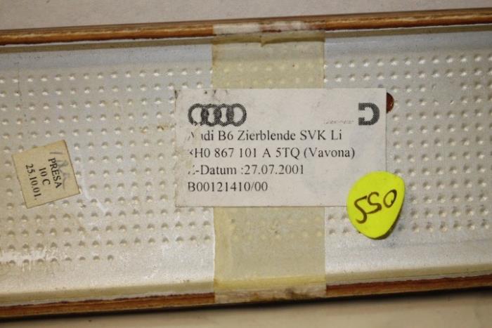 Sierlijst zijbekleding links achter Kleur: Vavona (bruin) Kleurcode: 5TQ Fabrikant: OE Vergelijkingsnummer: 8H0867101A 5TQ