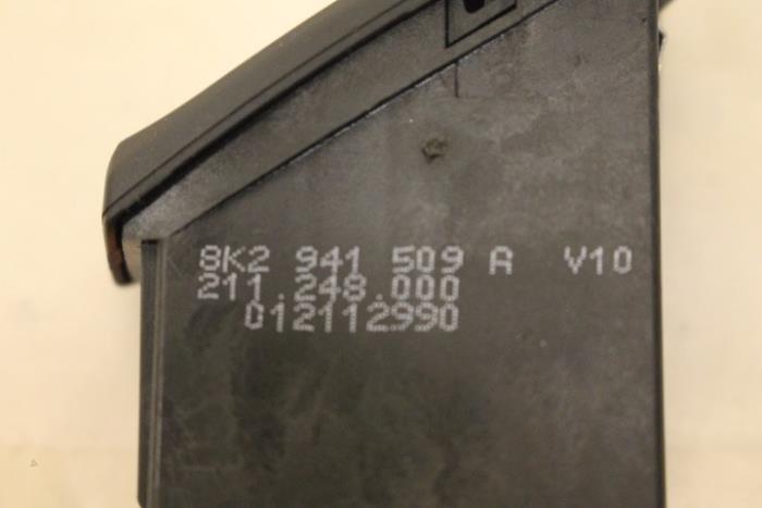 Alarmschakelaar ENGELS (rechtsgestuurde wagen) Kleur: Nero (zwart) Kleurcode: V10 Fabrikant: OE Mist 1 bevestigings ijzertje!! (zie foto) Vergelijkingsnummer: 8K2941509A V10