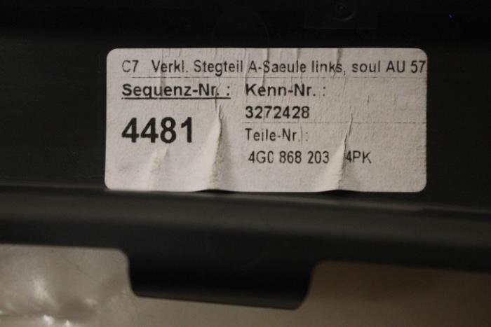 A-stijlbekleding links midden Kleur: Soul (zwart) Kleurcode: 4PK Fabrikant: OE Vergelijkingsnummer: 4G0868203 4PK