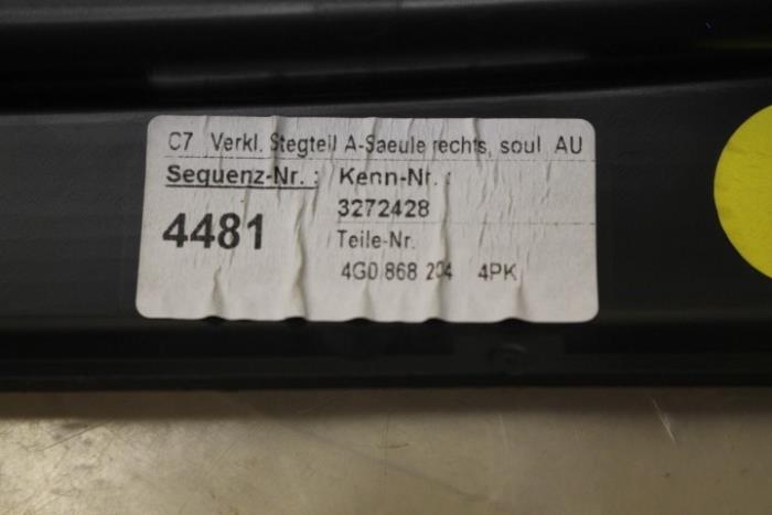 A-stijlbekleding rechts midden Kleur: Soul (zwart) Kleurcode: 4PK Fabrikant: OE Vergelijkingsnummer: 4G0868204 4PK