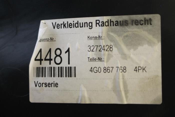 Wielkuipbekleding rechts onder Kleur: Soul (zwart) Kleurcode: 4PK Fabrikant: OE Vergelijkingsnummer: 4G0867768 4PK
