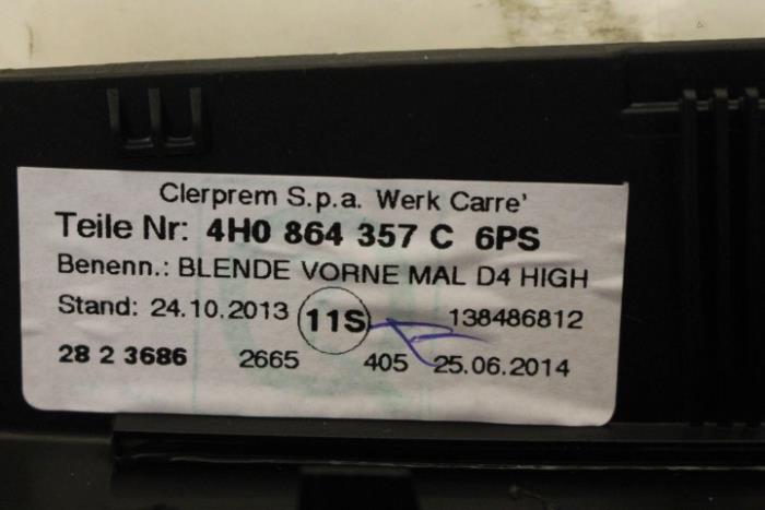 Afdekplaat voor armleuning Kleur: Soul (zwart) Kleurcode: 6PS Fabrikant: OE Vergelijkingsnummer: 4H0864357C 6PS