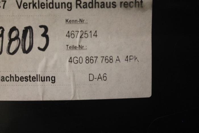 Wielkuipbekleding rechts onder Kleur: Soul (zwart) Kleurcode: 4PK Fabrikant: OE Vergelijkingsnummer: 4G0867768A 4PK