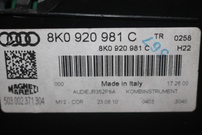 Instrumentenpaneel/km teller benzinemotor MPH Fabrikant: OE Vergelijkingsnummer: 8K0920981C Instrumentenpaneel dient nog gecodeerd/ingeleerd te worden. Tegen een geringe meerprijs is dit bij ons mogelijk.