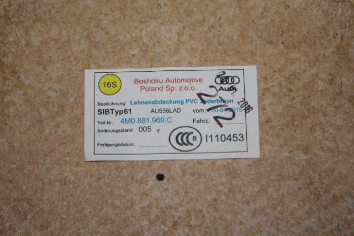 Afdekplaat voor rugleuning met opbergnet geschikt voor links en rechs Kleur: Cederbruin Kleurcode: KP5 Fabrikant: OE Vergelijkingsnummer: 4M0881969C KP5