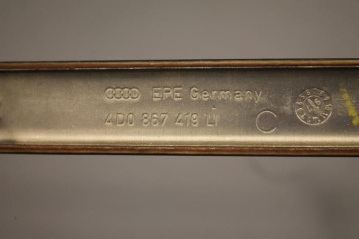 Sierlijst portier links achter Kleur: Notenbruin Kleurcode: 1WV Fabrikant: OE LET OP!!! HEEFT KRASSEN!!! Vergelijkingsnummer: 4D0867419 1WV