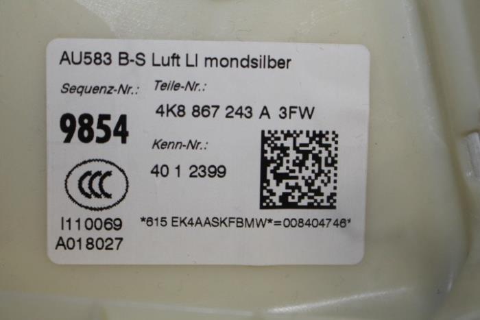 B-stijlbekleding links boven Kleur: Maanzilver Kleurcode: 3FW Fabrikant: OE Vergelijkingsnummer: 4K8867243A 3FW